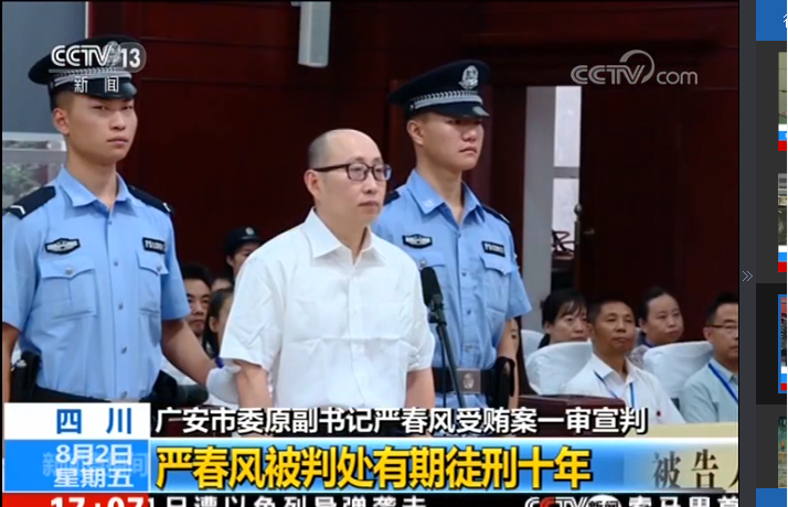 【解說詞】嚴春風之所以心慌,正是因為他知道部分網絡舉報的問題確實存在。2018年5月18日,幼兒園風波發生僅一周之后,四川省紀委監委在初核的基礎上,宣布對嚴春風進行立案審查調查。經調查發現,嚴春風利用職務上的便利,在工程承攬、項目糾紛解決等方面為他人謀取利益,受賄570余萬元。2019年8月,嚴春風被法院一審判處有期徒刑十年。