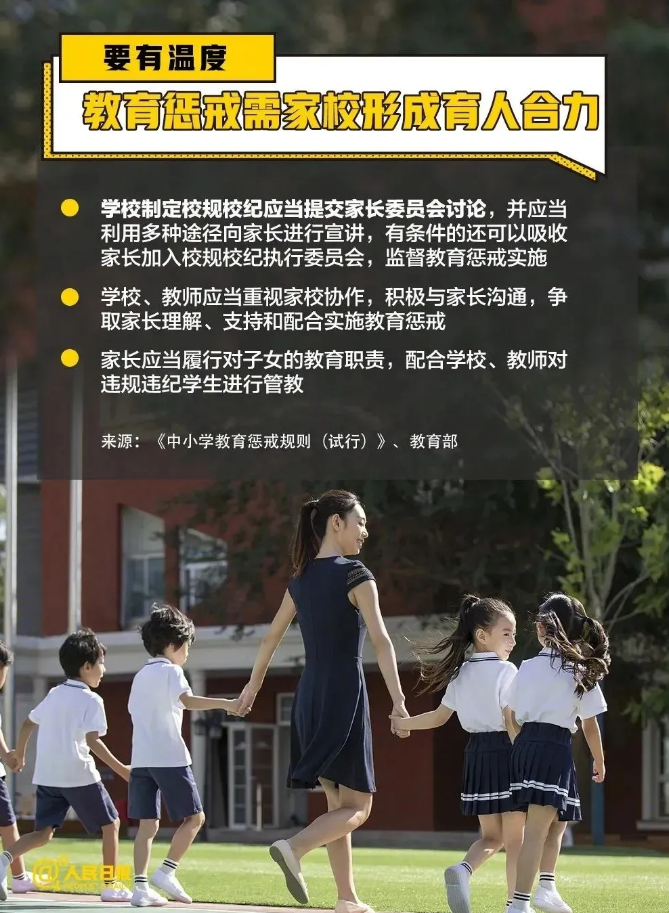 第十六條 學校、教師應當重視家校協作,積極與家長溝通,使家長理解、支持和配合實施教育懲戒,形成合力。家長應當履行對子女的教育職責,尊重教師的教育權利,配合教師、學校對違規違紀學生進行管教。