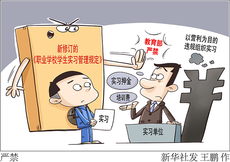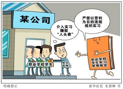 任何單位或部門不得干預職業學校正常安排和實施實習計劃,不得強制職業學校安排學生到指定單位實習。