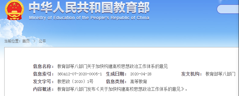 為深入貫徹落實習近平新時代中國特色社會主義思想,貫徹落實黨的十九大和十九屆二中、三中、四中全會精神,學習貫徹習近平總書記關于教育的重要論述,加快構建高校思想政治工作體系,努力培養擔當民族復興大任的時代新人,培養德智體美勞全面發展的社會主義建設者和接班人,現提出如下意見。