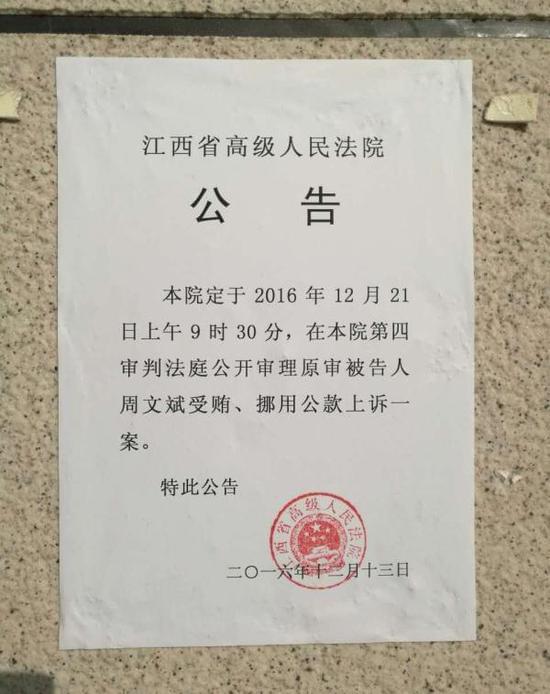 今天上午,江西省高級人民法院公開開庭審理了原南昌大學校長周文斌受賄、挪用公款上訴一案,并當庭作出判決,以受賄罪判處周文斌有期徒刑十二年,并處沒收個人財產100萬元;對其受賄犯罪所得依法予以追繳,上繳國庫。