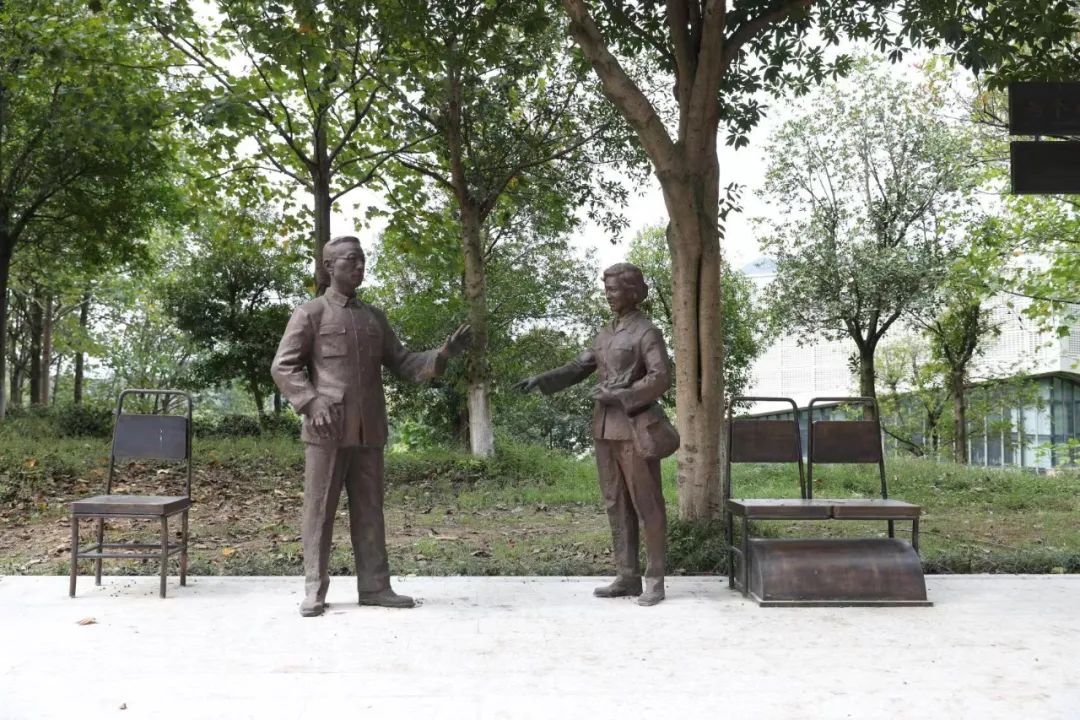 沿著校園文化景觀中軸線徐徐向前,便是主題公園“陶園”,一座名為“兩個口袋”的廉潔文化雕塑映入眼簾。“這座雕塑表現的是1938年陶行知為籌資辦學外出募捐,他把捐款放入一只口袋,把私款放在另一只口袋,后來私款耗盡買不了車票,于是步行十里回校的故事。”杭科院紀委書記王鵬宇介紹道。雕塑栩栩如生,陶行知一手捂住裝滿公款的口袋,一手婉拒到站的公交車,清正廉潔、公私分明的形象就這樣走入了每一個杭科院師生的心里,成為“清廉杭科院”建設的鮮明底色與傳承基因。