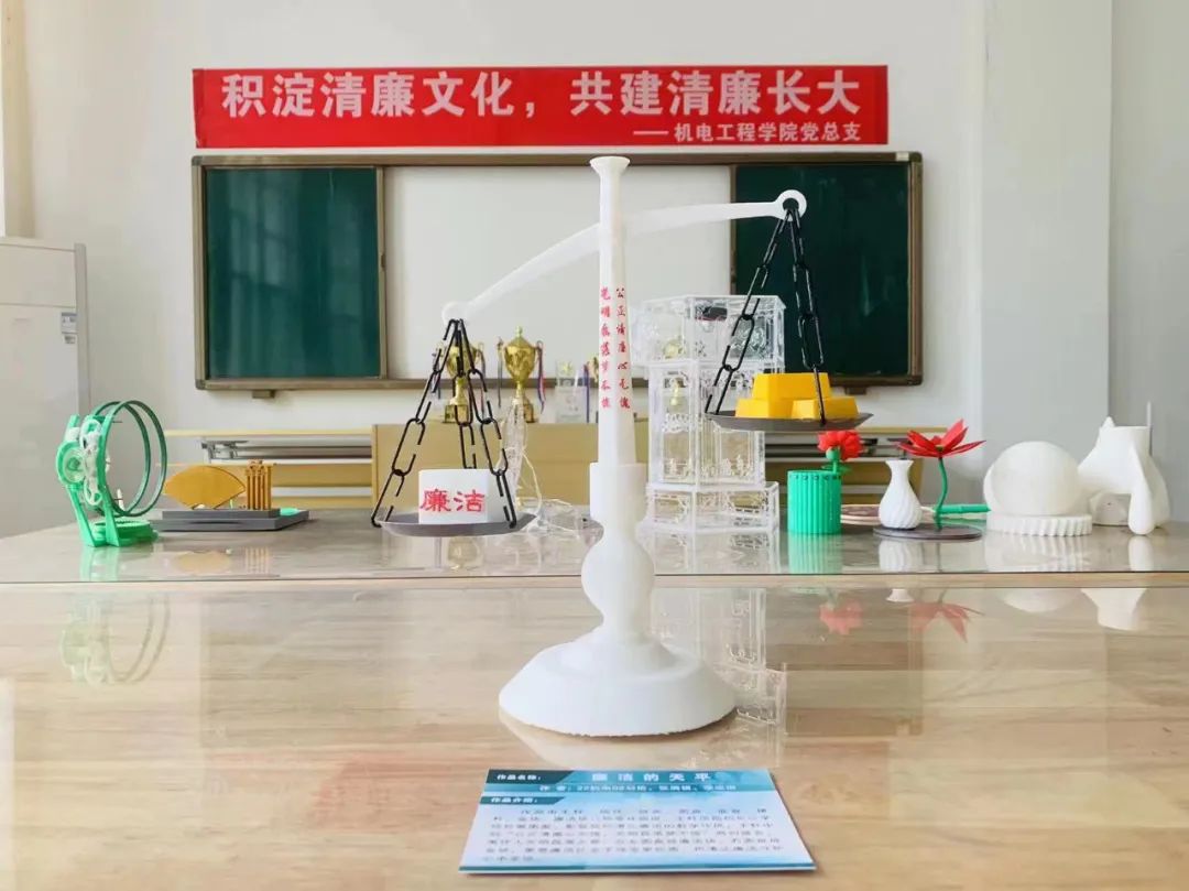 《廉尺》《荷竹之廉》《清廉號》……當清廉與3D打印、激光切割“碰撞”,會擦出怎樣的火花?前不久,在長沙學院校園廉潔文化3D建模大賽中,一件件主旨鮮明、富有創意的工藝作品從學生手中誕生,讓廉潔文化可觀可感可觸。