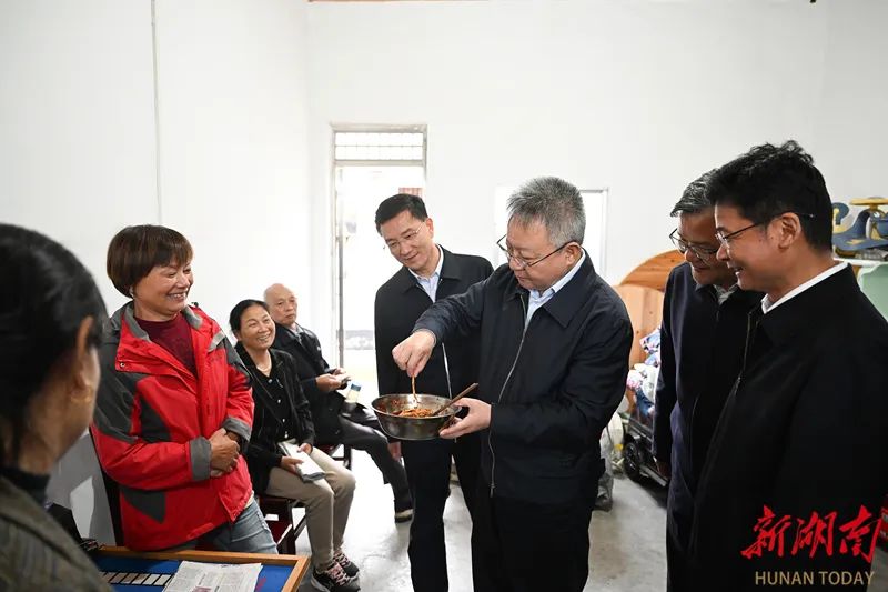 (5月6日,沈曉明走進謝家鋪鎮(zhèn)施家陂村老年互助幸福屋,與大家拉起家常。以上圖片均由 湖南日報全媒體記者 唐俊 攝)