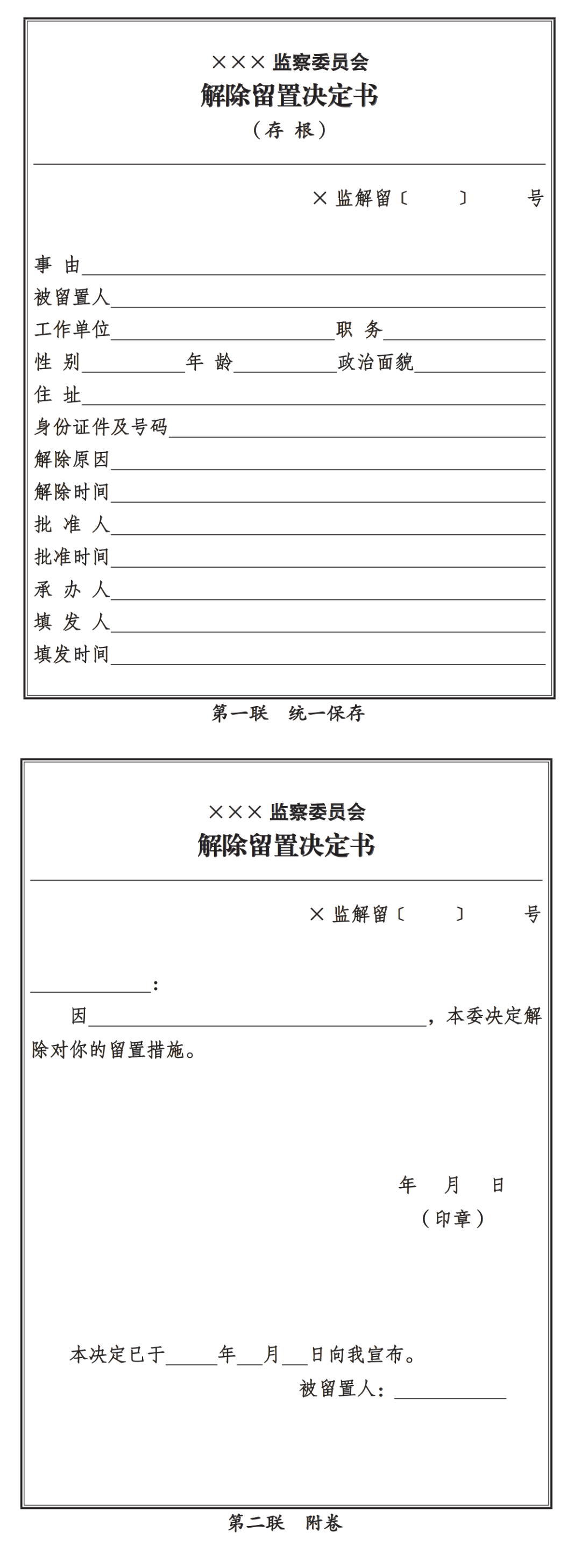 留置決定書模板