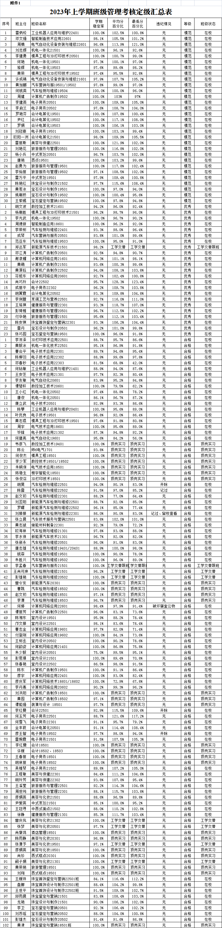 根據(jù)《關(guān)于印發(fā)<郴州技師學(xué)院班級(jí)管理考核定級(jí)及班主任績效考核辦法>的通知》(郴技〔2020〕30號(hào))文件要求和規(guī)定,經(jīng)教學(xué)系初評(píng)申報(bào),學(xué)生工作處、招生就業(yè)處、財(cái)務(wù)處、后勤處、保衛(wèi)處、團(tuán)委審核,擬評(píng)選工業(yè)機(jī)器人應(yīng)用與維護(hù)22401等29個(gè)班為模范等級(jí),數(shù)控加工技術(shù)21601班等23個(gè)班為優(yōu)秀等級(jí),電氣自動(dòng)化設(shè)備安裝與維修22601班等103個(gè)班為合格等級(jí),現(xiàn)予以公示(定級(jí)情況見附件)。