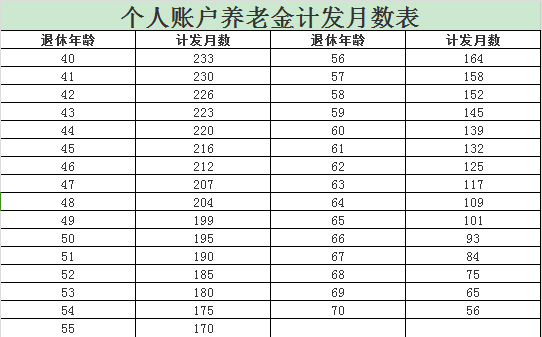 附件:個人賬戶養老金計發月數表