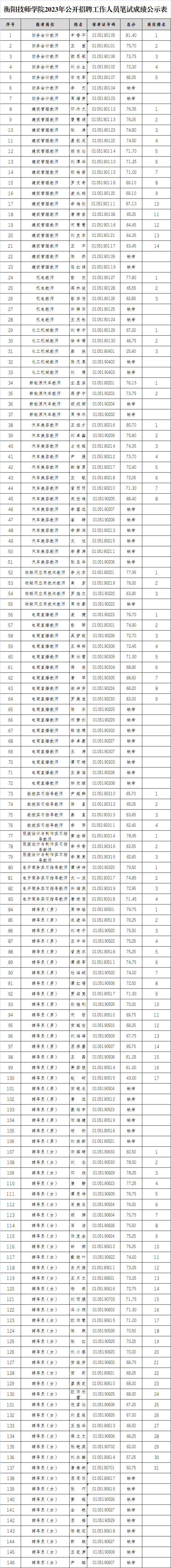 附:衡陽技師學院2023年公開招聘工作人員筆試成績公示表