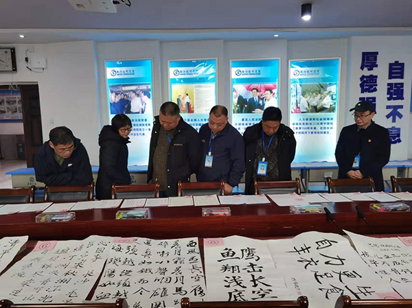 12月13日,學院紀念毛澤東誕辰130周年系列活動——毛澤東詩詞書法比賽作品在實訓中心二樓錄播室開展評比。學院黨委副書記、工會主席陳干甲蒞臨指導。