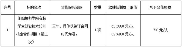 (11)所招標的駕校不得將培訓工作分包或轉包,不得由掛靠車輛從事我院學員駕駛技術培訓工作;培訓期間免費提供學員接送服務,由衡陽技師學院指定具體接送地點,為確保學員安全,在接送學員往返途中,不得任由學員私自中途下車(本條款在合作期內中標人如有違反,即終止合作)。