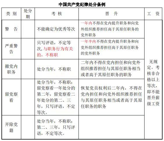 五、受開除黨籍處分的當(dāng)年,參加年度考核,確定為不稱職;第二年和第三年參加年度考核,只寫評語不確定等次。