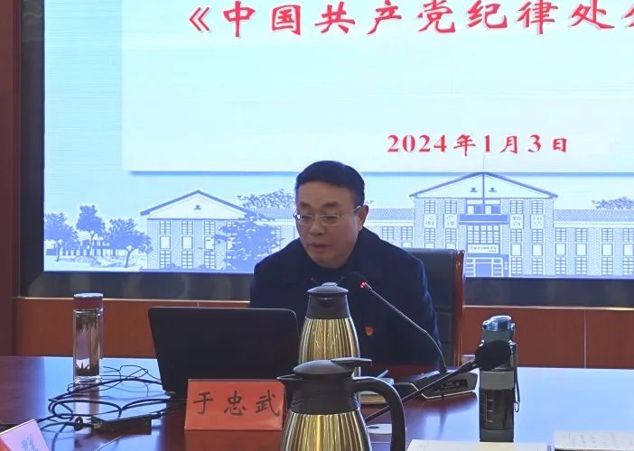 近日,中共中央印發了修訂后的《中國共產黨紀律處分條例》,1月3日,學院召開黨委理論學習中心組學習(擴大)會,專題學習新修訂的《中國共產黨紀律處分條例》。學院黨委書記、院長于忠武主持學習,學院領導班子成員、部門負責人、全體紀檢委員參加學習。