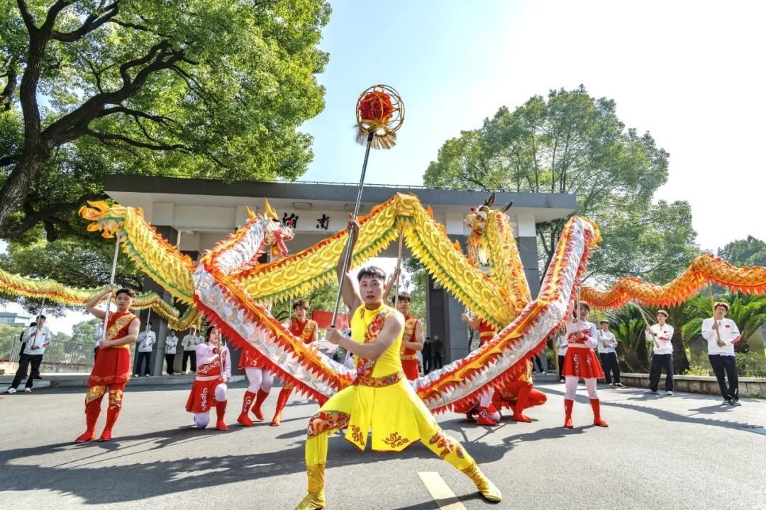 “一金一銀”兩條長龍在校園內巡游