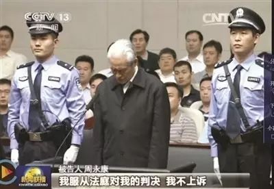 2015年6月11日,天津市第一中級人民法院依法對周永康受賄、濫用職權、故意泄露國家秘密案進行了一審宣判,認定周永康犯受賄罪,判處無期徒刑,剝奪政治權利終身,并處沒收個人財產;犯濫用職權罪,判處有期徒刑七年;犯故意泄露國家秘密罪,判處有期徒刑四年,三罪并罰,決定執行無期徒刑,剝奪政治權利終身,并處沒收個人財產。周永康當庭表示,服從法庭判決,不上訴;進入司法調查以來,辦案機關依法辦案、文明執法,講事實、講道理,充分體現了我國司法的進步,使他認識到自己違法犯罪的事實給黨的事業造成的損失,給社會造成了嚴重影響,再次表示認罪悔罪。
