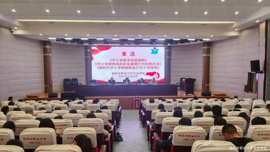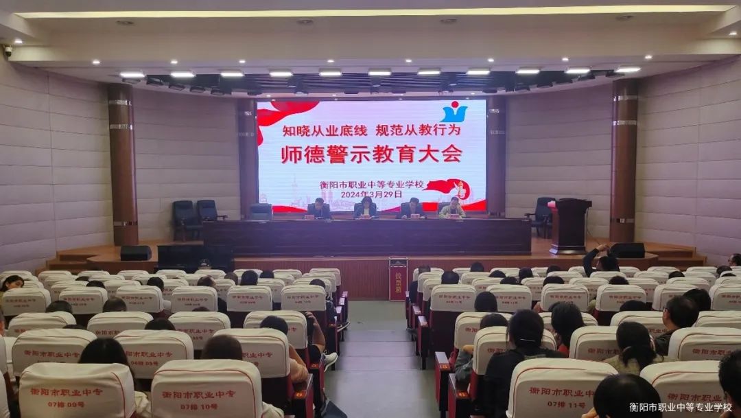 為貫徹落實衡陽市教育局《關于在全市教育系統(tǒng)組織召開全員師德警示教育的通知》精神,進一步加強學校師德師風建設,提升教師的思想政治素質和職業(yè)道德水平,3月29日下午,衡陽市職業(yè)中等專業(yè)學校在多功能報告廳召開了“知曉從業(yè)底線 規(guī)范從教行為”師德警示教育大會,會議由校長鄒鵬主持,全體教職員工參加。