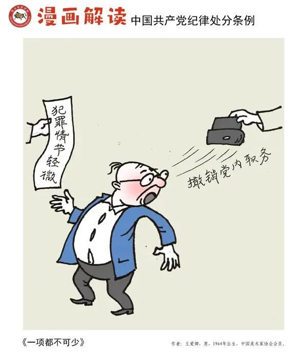 紀法鏈接:對黨員的紀律處分種類:(一)警告;(二)嚴重警告;(三)撤銷黨內職務;(四)留黨察看;(五)開除黨籍。(引自《條例》第二章第八條)