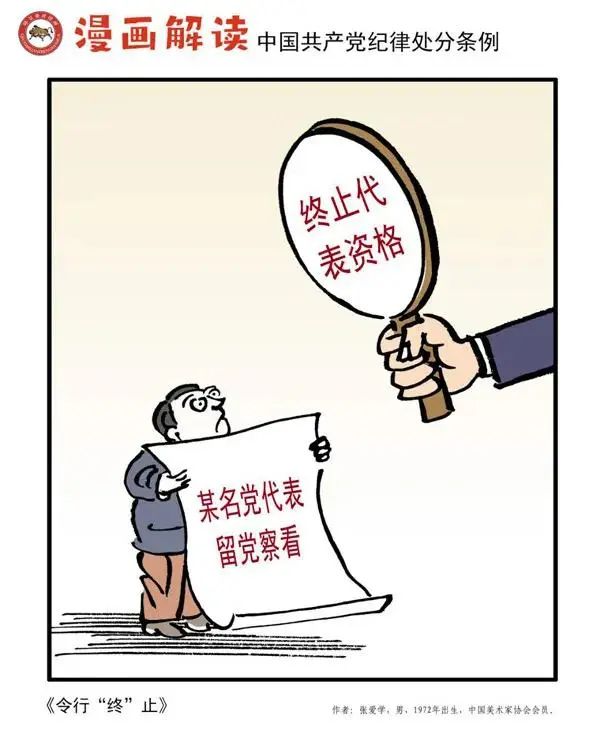 紀法鏈接:黨員干部受到黨紀處分,需要同時進行組織處理的,黨組織應當按照規定給予組織處理。黨的各級代表大會的代表受到留黨察看以上處分的,黨組織應當終止其代表資格。(引自《條例》第二章第十四條)