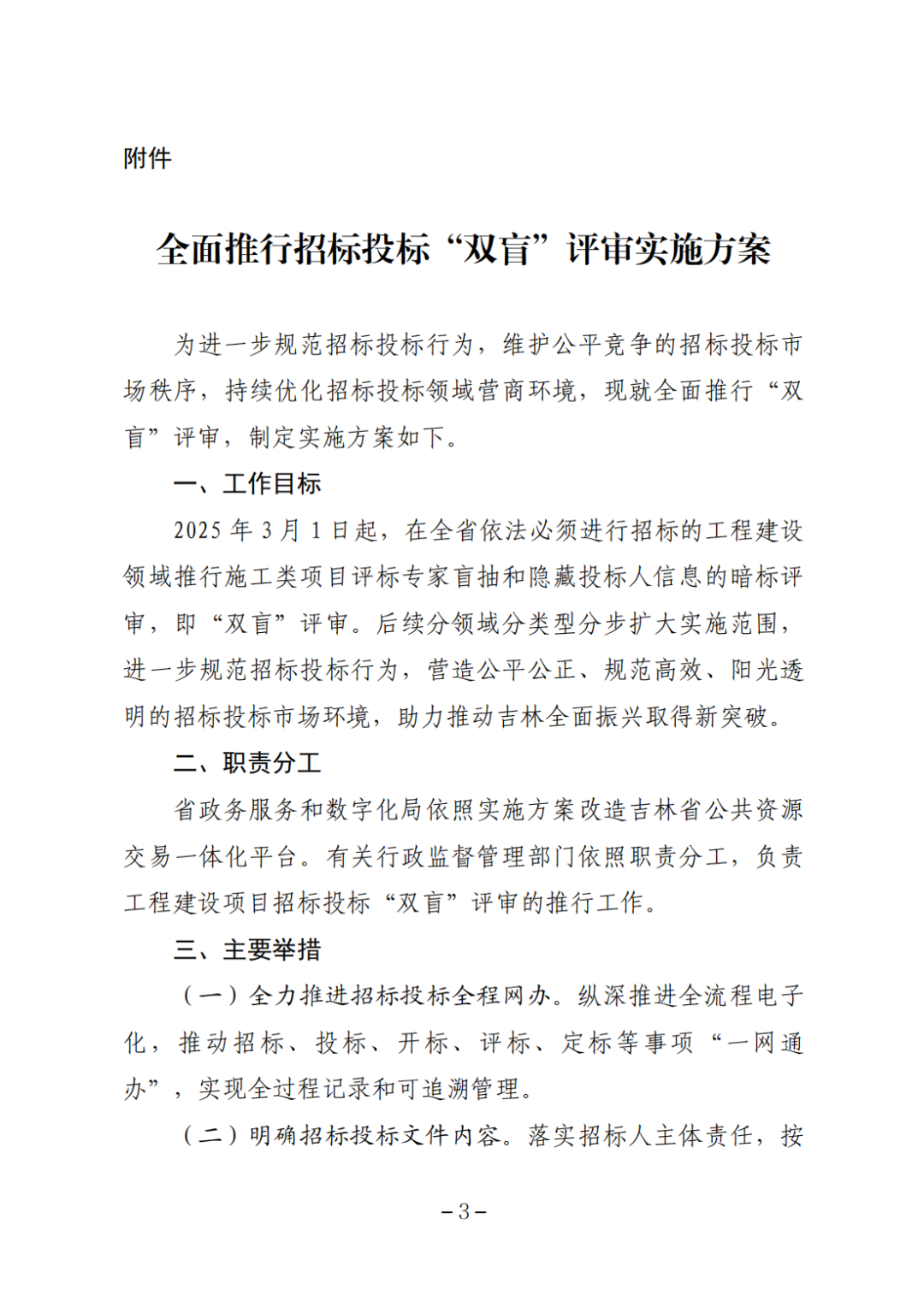 吉林省全面推行招標投標“雙盲”評審實施方案