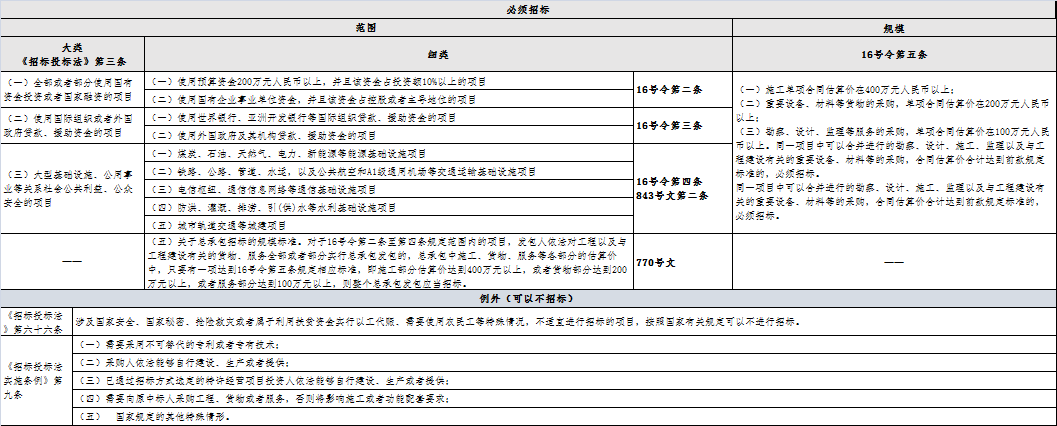 ??(三)關于招標范圍列舉事項。依法必須招標的工程建設項目范圍和規模標準,應當嚴格執行《招標投標法》第三條和16號令、843號文規定;法律、行政法規或者國務院對必須進行招標的其他項目范圍有規定的,依照其規定。沒有法律、行政法規或者國務院規定依據的,對16號令第五條第一款第(三)項中沒有明確列舉規定的服務事項、843號文第二條中沒有明確列舉規定的項目,不得強制要求招標。
