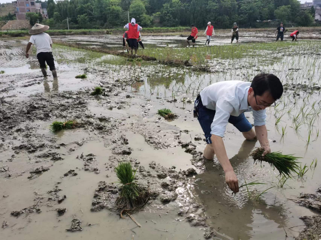 大坪塘鎮(zhèn)黨委書記唐志堅(jiān)帶頭在田間幫農(nóng)戶插秧
