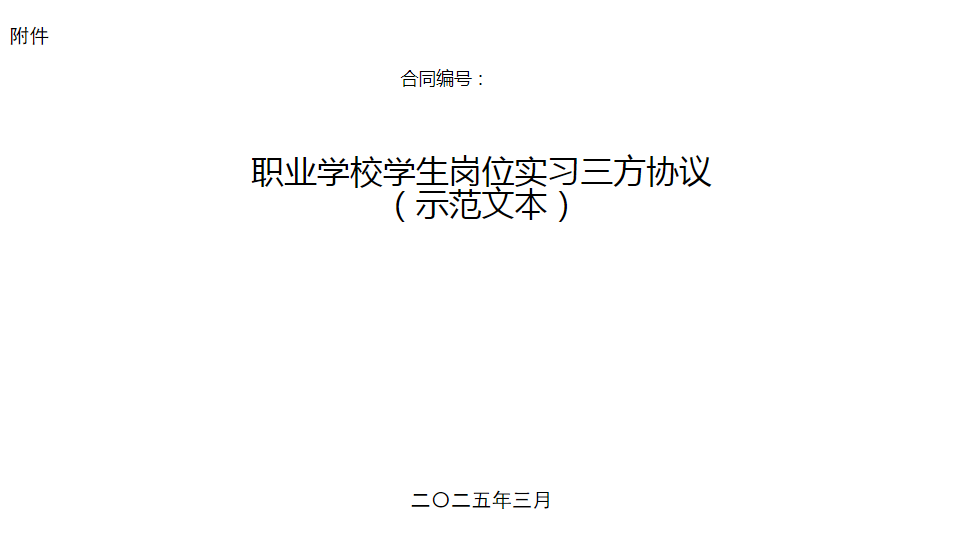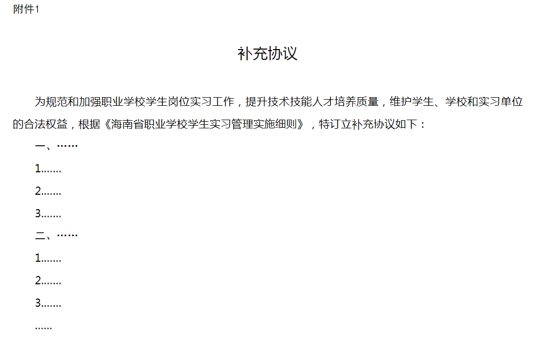 第十四條??學(xué)生參加崗位實習(xí)前,職業(yè)學(xué)校、實習(xí)單位和學(xué)生三方必須以教育部等部門發(fā)布的實習(xí)協(xié)議范本為基礎(chǔ)簽訂實習(xí)協(xié)議,實習(xí)協(xié)議示范文本不得刪減,可以附件形式增添有關(guān)條款。協(xié)議文本由當(dāng)事方各執(zhí)一份,并依法嚴(yán)格履行協(xié)議中有關(guān)條款。自主實習(xí)學(xué)生與學(xué)校統(tǒng)一安排實習(xí)學(xué)生應(yīng)簽訂同一版本的《實習(xí)協(xié)議》。