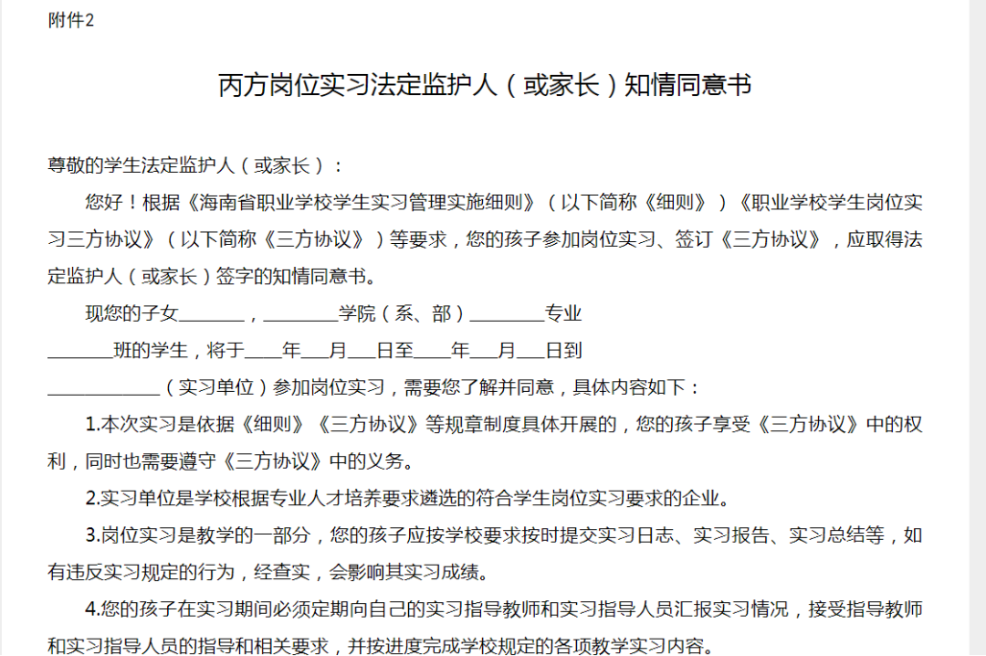 2.丙方崗位實習(xí)法定監(jiān)護人(或家長)知情同意書