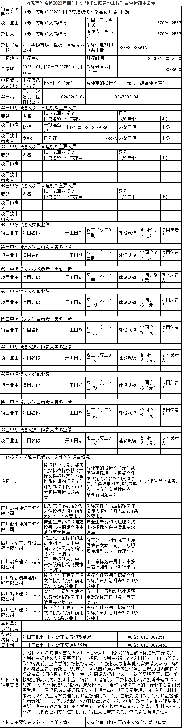 3.表中的“中標(biāo)候選人類(lèi)似業(yè)績(jī)”和“中標(biāo)候選人項(xiàng)目負(fù)責(zé)人類(lèi)似業(yè)績(jī)” 應(yīng)填寫(xiě)中標(biāo)候選人在投標(biāo)文件中所附所有業(yè)績(jī)。