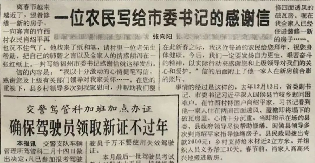 1996年2月17日,農歷臘月二十九,《福州晚報》刊登了一位農民寫給市委書記的信。