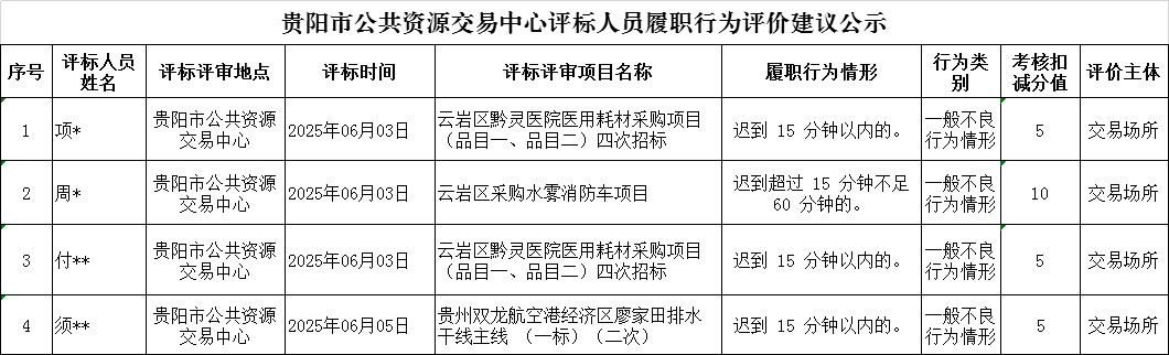 附件:貴陽市公共資源交易中心評標人員履職行為評價建議公示
