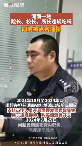 龍山縣桂塘派出所原所長尚超私設(shè)“小金庫”用于違規(guī)吃喝問題。2021年10月至2024年2月,尚超在擔(dān)任桂塘派出所所長期間,安排工作人員開具虛假發(fā)票套取資金,用于違規(guī)接待、購買煙酒等開支。尚超還存在其他違紀(jì)問題。2024年7月25日,尚超受到撤銷黨內(nèi)職務(wù)、政務(wù)撤職處分。