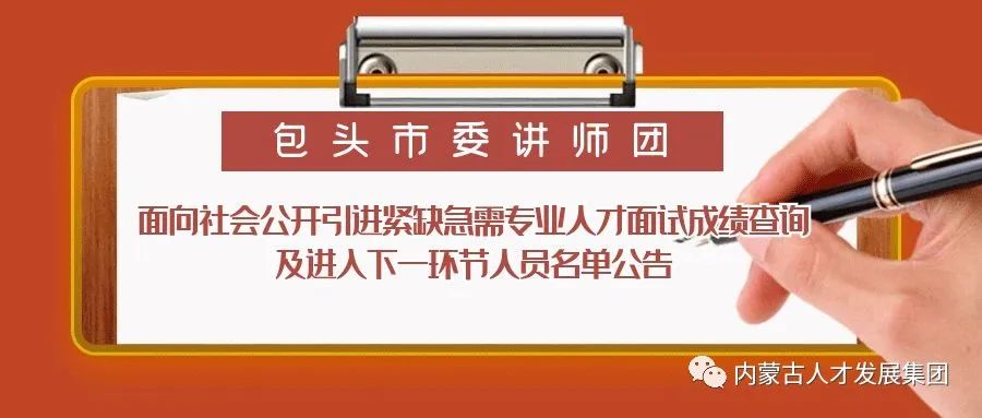 按照包頭市委講師團(tuán)面向社會公開引進(jìn)緊缺急需專業(yè)人才工作流程,經(jīng)報名、資格審查、面試等程序,現(xiàn)將成績有關(guān)事項公告如下: