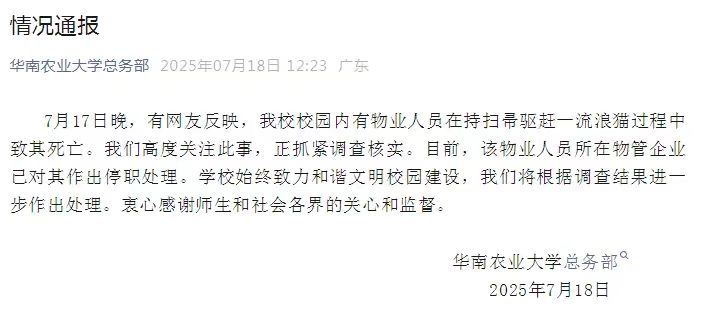 華南農(nóng)大總務(wù)部關(guān)于流浪貓死亡的情況通報(bào)