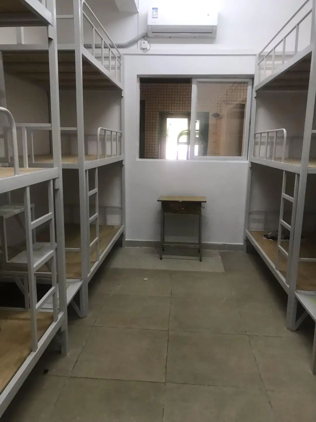 視頻顯示,上述每間學(xué)生宿舍均放置了四張三層床,可同時(shí)容納12人住宿。不同的是,其中一間疑似由茶水間“爆改”而成的宿舍,并沒有陽(yáng)臺(tái)和洗手間,就只有一扇窗。