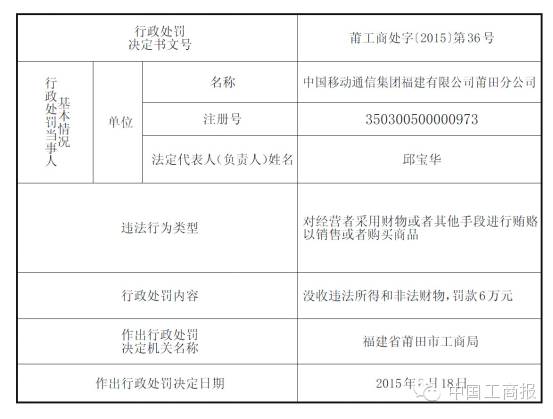 “校訊通”是利用現代信息技術實現學校與家庭快捷、實時溝通的一種教育網絡平臺,在眾多中小學校使用廣泛。近日,福建省莆田市工商局認定,中國移動通信集團福建有限公司莆田分公司通過“關愛無極限”短信互動大賽的形式,向能夠影響家長訂閱“校訊通”業務的學校、教師發放購物卡的行為構成商業賄賂,對其罰款6萬元。