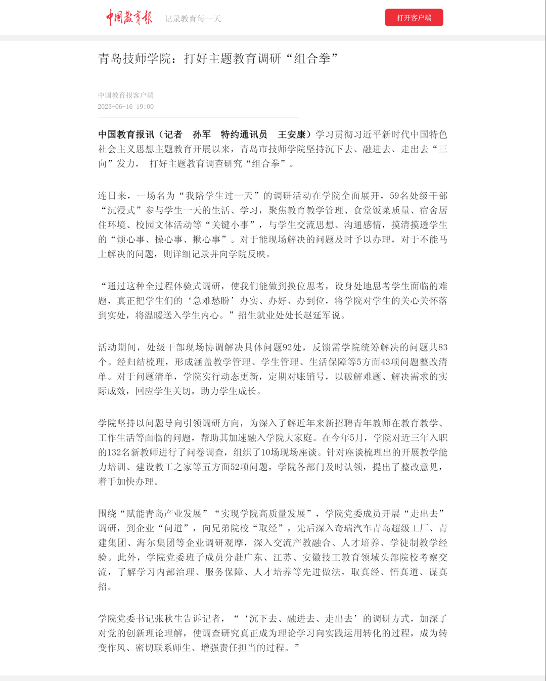 青島技師學(xué)院:打好主題教育調(diào)研“組合拳”