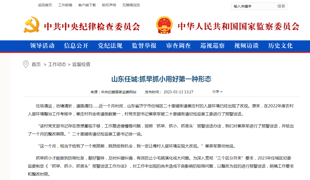 抓早抓小,說易行難,能不能通過“紅臉出汗”讓干部心服口服,正視自身存在的問題,起到“斷喝一聲”、及時止錯的作用,考校的不僅是能力水平,更是責任擔當。這就要求紀檢監(jiān)察機關既要加強規(guī)范化法治化正規(guī)化建設,提升政治能力、政策水平、紀法素養(yǎng),把嚴的要求貫徹到監(jiān)督前沿,也要履行好協(xié)助職責,壓緊壓實全面從嚴治黨主體責任,不斷形成齊抓共管的良好格局。山東省通過建立健全制度機制,明確實施主體、適用情形、操作流程等,推動第一種形態(tài)運用規(guī)范化法治化,并將之納入落實全面從嚴治黨主體責任考核等探索實踐,值得參考借鑒。