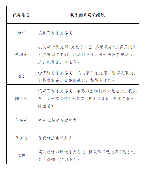 衡陽技師學院第二屆紀委委員工作分工