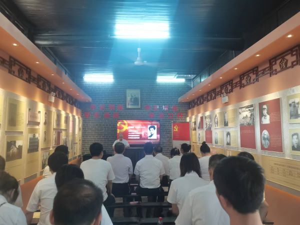 隨后,大家來到湘南學(xué)聯(lián)舊址,觀看了關(guān)于蔣先云和夏明翰的紅色微電影,并在王陽(yáng)春的帶領(lǐng)下,重溫入黨誓詞。“我志愿加入中國(guó)共產(chǎn)黨,擁護(hù)黨的綱領(lǐng),遵守黨的章程……”。錚錚誓言提醒著每位黨員要銘記革命先烈事跡,傳承紅色基因,立足崗位踐初心。