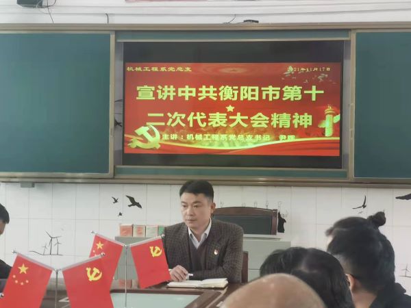 為深入學習宣傳貫徹衡陽市第十二次黨代會精神,11月17日,機械工程系黨總支書記尹暉同志以衡陽市第十二次黨代會報告為重要內容開展宣講。