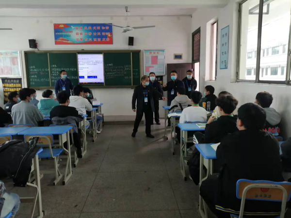 ▲黨員教師羅吒同志在19數控高技1班進行防疫宣講