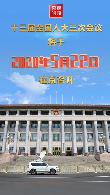 十三屆全國人大常委會第十七次會議決定:十三屆全國人大三次會議將于2020年5月22日在北京召開。政協(xié)第十三屆全國委員會第三十五次主席會議建議:全國政協(xié)十三屆三次會議于2020年5月21日在北京召開。