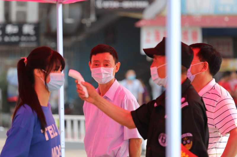 (學生返校復學愉快接受防疫安檢)