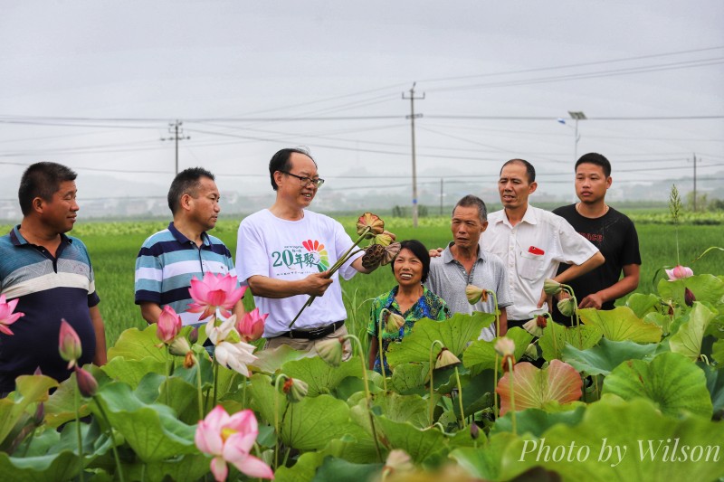 我系周鑒同志參加此次下鄉(xiāng)扶貧服務(wù)活動(dòng),在田間地頭為老百姓提供實(shí)實(shí)在在的蓮藕種植與病蟲防治技術(shù)。