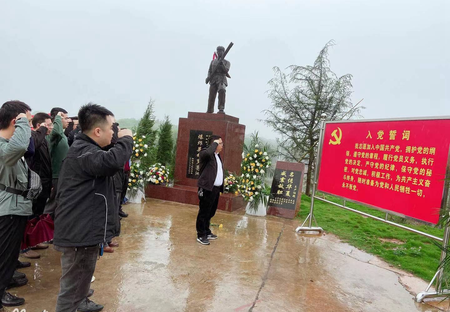 全體黨員干部懷著崇高的敬意瞻仰了羅亮泗英雄雕像。大家整齊列隊,集體為英雄鞠躬默哀、敬獻花籃,表達敬仰和追思,并重溫入黨誓詞。