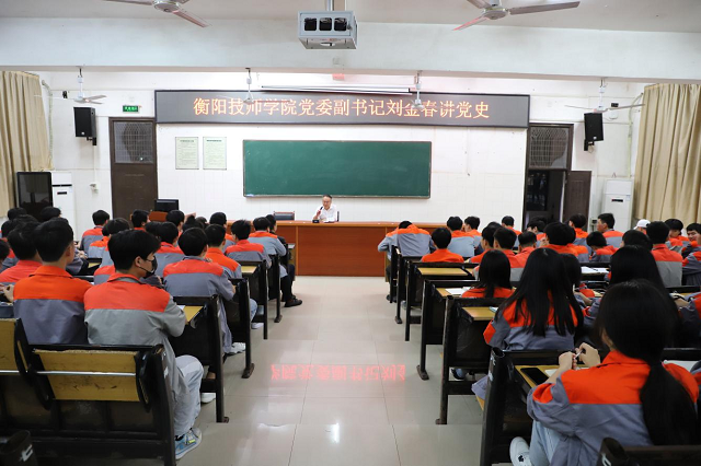 5月27日晚,衡陽技師學(xué)院黨委副書記劉金春在第一教學(xué)樓一樓多媒體教室以《學(xué)百年黨史,爭做有為技能青年》為題宣講黨史,汽車工程系100名學(xué)生現(xiàn)場聆聽了一堂別開生面的黨史宣講課。