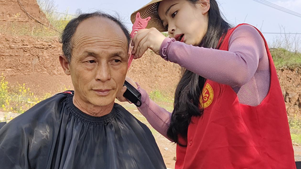 現(xiàn)場設(shè)有愛心義剪、電器維修、美化環(huán)境等多個服務(wù)點,前來的居民絡(luò)繹不絕,志愿者們忙得不亦樂乎。義剪志愿者邊理發(fā)邊詢問老人的意見,“兩邊修剪剪短,頭頂修齊整......”在志愿者嫻熟的手法下,一個個干凈利落的發(fā)型便成型了。