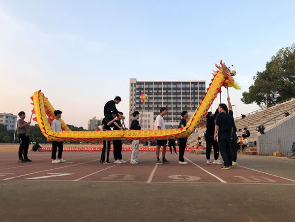 本網訊 近期,學院田徑場傳來陣陣鑼鼓聲,四條金燦燦的舞龍在教練陳祖昆的指導下,時而上下翻騰、時而左右翻飛,不斷變化出各種花樣,引得圍觀師生一陣拍手叫好。