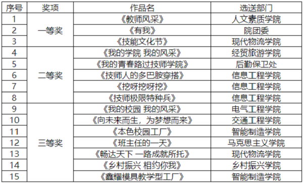 優(yōu)秀組織獎(jiǎng):交通工程學(xué)院、現(xiàn)代物流學(xué)院、智能智造學(xué)院、信息工程學(xué)院、經(jīng)貿(mào)旅游學(xué)院。
