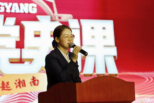 在《星火起湘南》音樂黨史課上,衡陽市委黨史研究室四級調(diào)研員廖建萍以史串歌、以歌敘史,將一首首振奮人心的經(jīng)典歌曲穿插在黨課中,讓大家沉浸式感受到一個個紅色故事帶給心靈的巨大震撼。全場大合唱《沒有共產(chǎn)黨就沒有新中國》將音樂黨史課推向高潮。