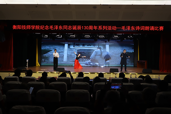 11月29日下午,學(xué)院紀(jì)念毛澤東誕辰130周年系列活動——毛澤東詩詞朗誦比賽在公共實訓(xùn)基地11樓多功能報告廳舉行。學(xué)院黨委副書記、院長廖與飛及黨委班子成員、師生代表共500余人參加。